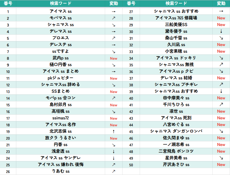 あとこの画像を見て分かるんですが、何故かミリマス関連のワードが全くランクインしないんですよね。